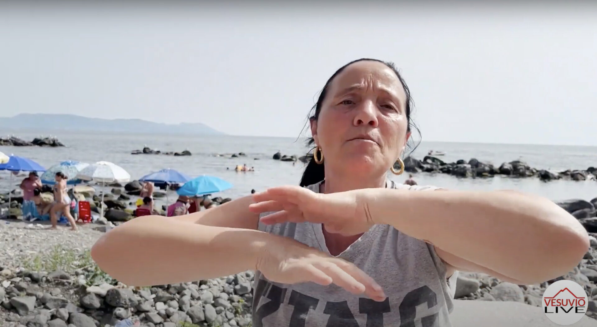 “Ci veniamo qui con i nostri figli da quando erano piccoli, ormai si sono sposati” è la testimonianza di una bagnante che mostra alle telecamere le condizioni della spiaggia: carcasse di motorini bruciati, residui di televisori ed altri materiali ingombranti, calcinacci e pericolosissimi spuntoni di metallo. Un pò la diffusa inciviltà, un pò la forza delle onde del mare che riporta a riva tutto quanto l’essere umano affida alle sue acque, un pò la conformazione del territorio torrese, che raccoglie l’acqua piovana dalle pendici del Vesuvio e la incanala per le strade cittadine trascinando con forza detriti e rifiuti di ogni genere.