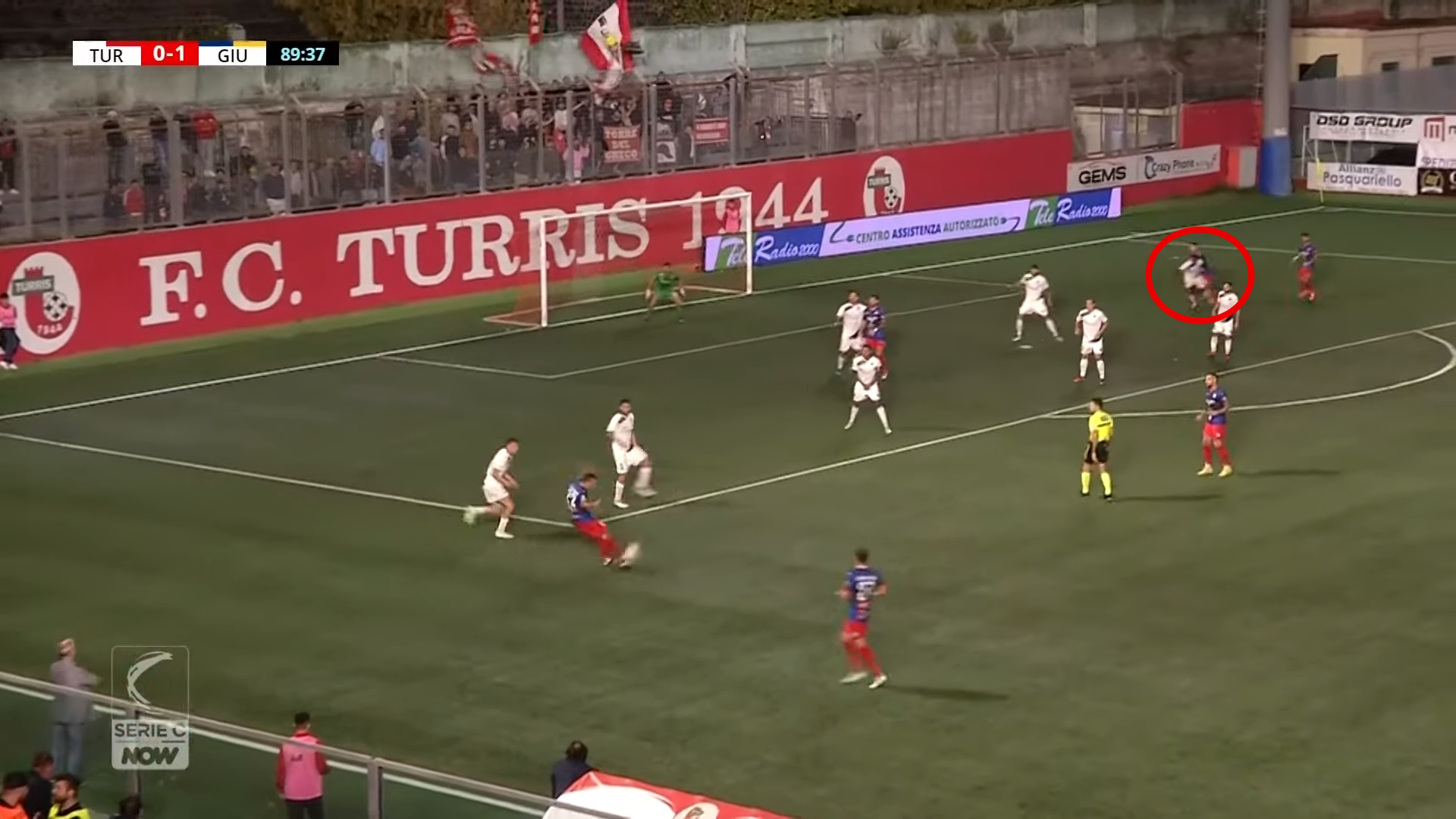 Due settimane dopo è ancora la Turris sfortunata protagonista di un episodio arbitrale. In Turris-Giugliano, finita 0-1 per gli ospiti nel finale viene annullata una rete regolarissima a Francesco De Felice, accusato dal guardalinee di essere in fuorigioco. L’immagine però è chiara, con il numero undici dietro l’ultimo marcatore nel momento in cui Scaccabarozzi mette al centro dell’area (PUNTI PERSI 1).