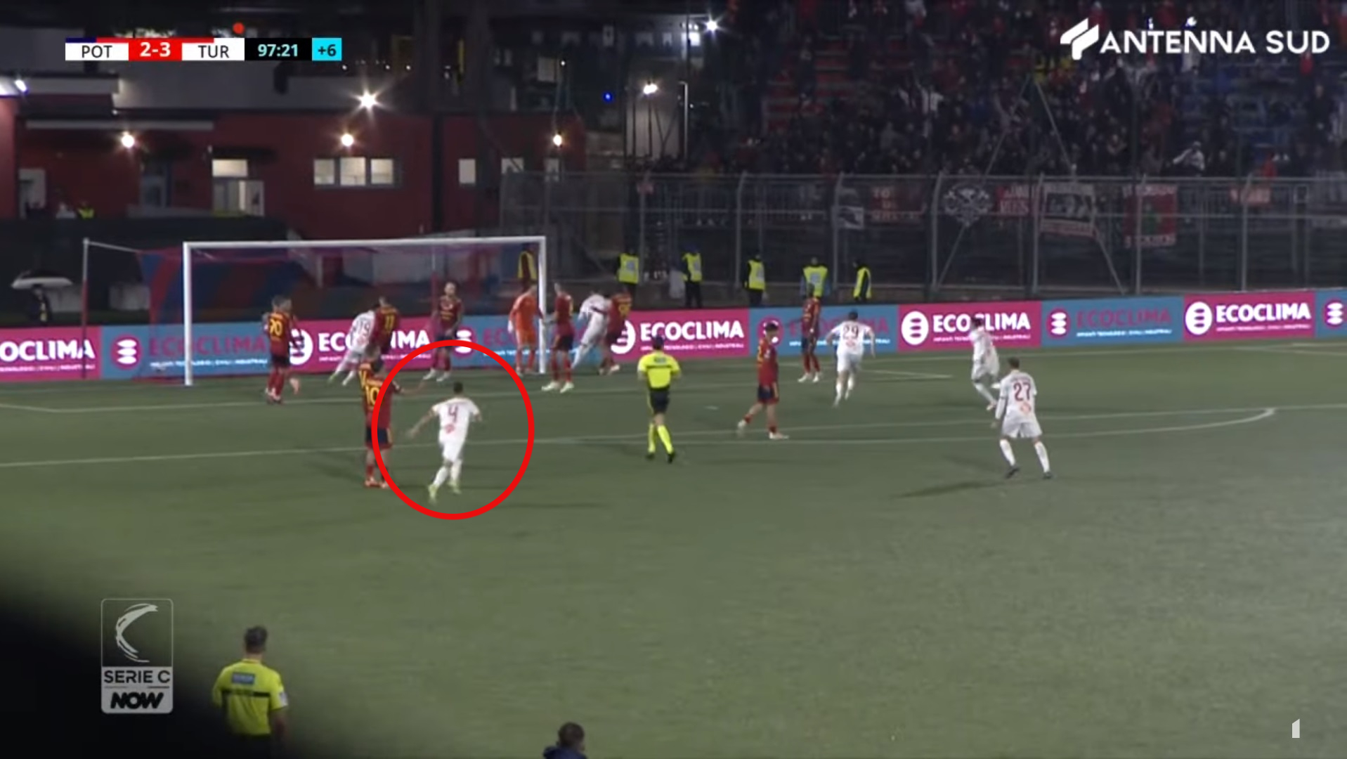 Il secondo episodio sul gol del 3-1, quando Marotta su contrasto si porta la palla avanti con un netto fallo di mano, urlato a gran voce dai calciatori corallini ma non segnalato dall’arbitro che era nelle vicinanze dell’azione. (PUNTI PERSI 1)