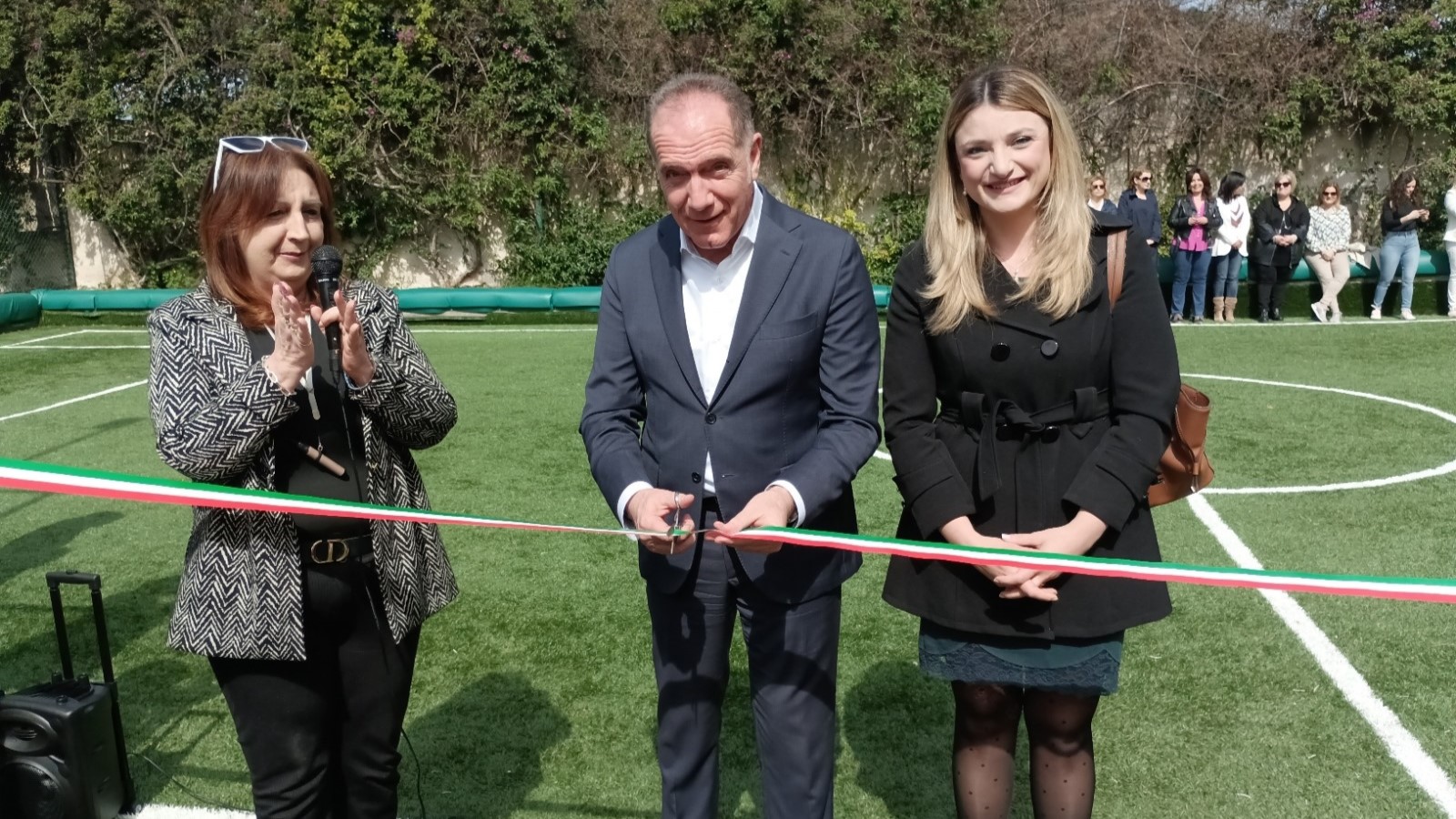 Inaugurato un campetto in erba sintetica all'Angioletti di Torre del Greco. Al taglio del nastro anche Mennella