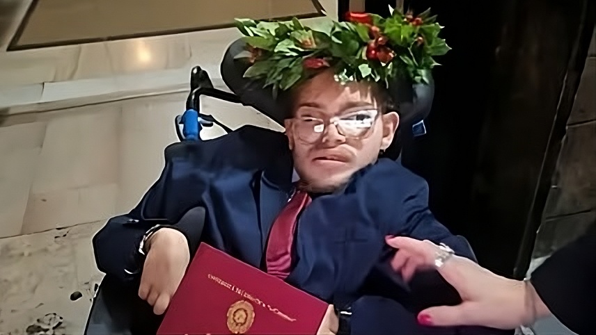 Affetto da una grave disabilità motoria, il giovane utilizza questo dispositivo fin dalla nascita. Grazie a esso ha potuto seguire le lezioni, sostenere gli esami e preparare la tesi, superando non solo i limiti fisici, ma anche ostacoli culturali e organizzativi ancora presenti nel mondo accademico e lavorativo.