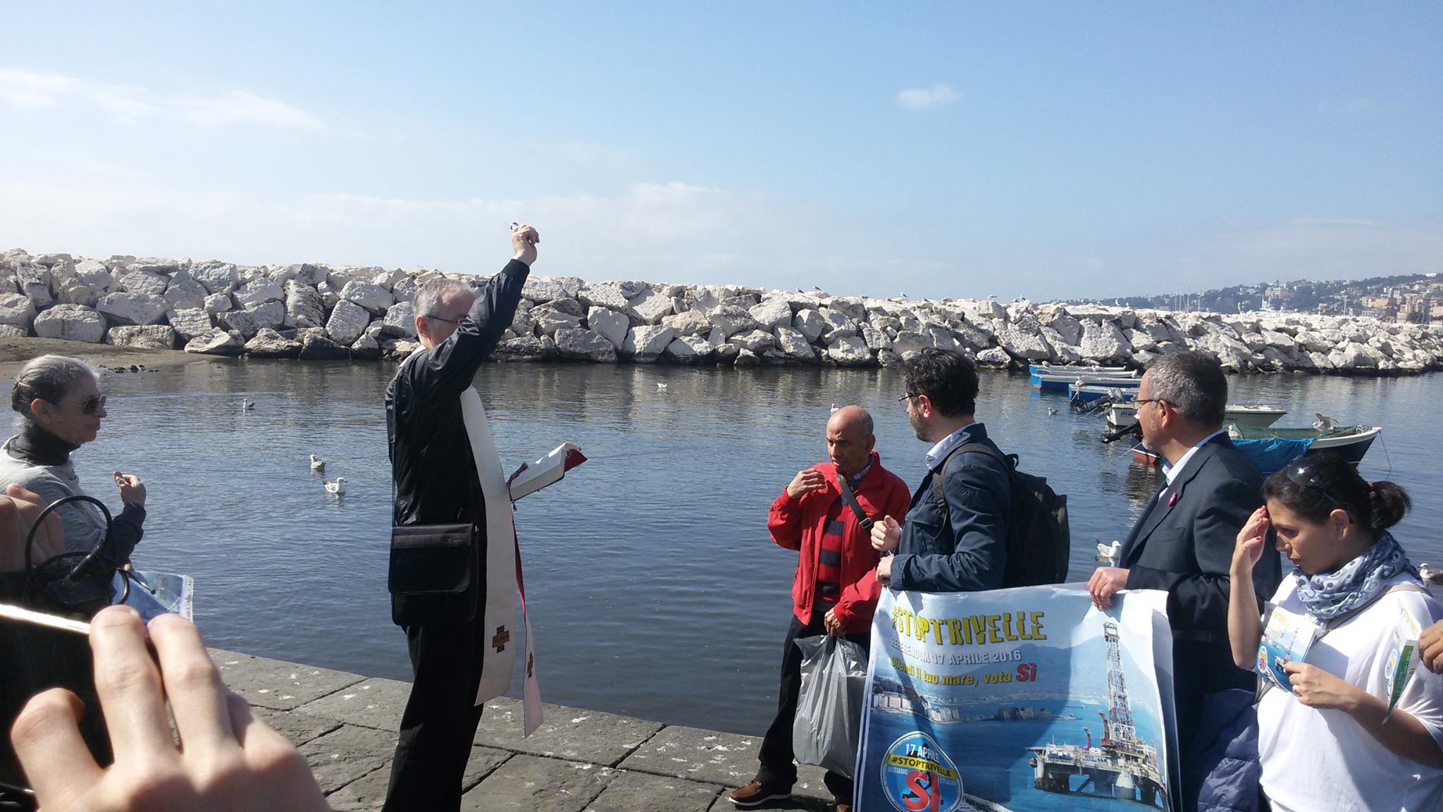 All’evento tenutosi a Mergellina erano presenti i Verdi, la Lipu e membri dei comitati referendari. Sono stati quest’ultimi che, nell’ultimo giorno di campagna elettorale, hanno organizzato grazie alla disponibilità dei preti delle chiese di San Francesco di Paola, protettore degli uomini di mare, e di Mergellina, quartiere di pescatori, la speciale benedizione.