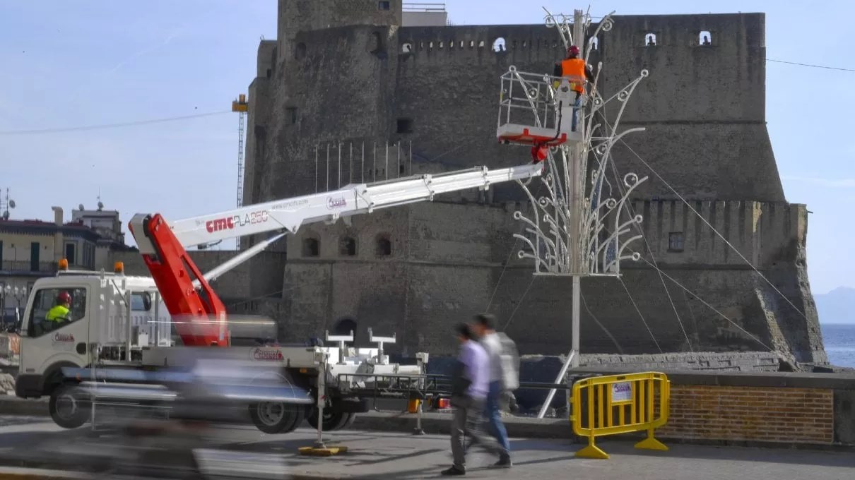 Le luminarie anche sugli scogli del lungomare e in prossimità di Castel dell’Ovo. Continuano le polemiche a Napoli per luci che la Camera di Commercio sta installando in città ormai da qualche settimana, con molto anticipo rispetto al periodo natalizio, per poter coprire in tempo il vasto territorio cittadino facendo affidamento su un numero relativamente ristretto di operai. Questa volta le perplessità riguardano la vista di Castel dell’Ovo, che secondo alcuni potrebbe essere ostacolata dalle installazioni. Da parte sua, la Camera di Commercio assicura che sono perfettamente in regola. Nel frattempo continua la messa in posizione delle luci da parte degli addetti.