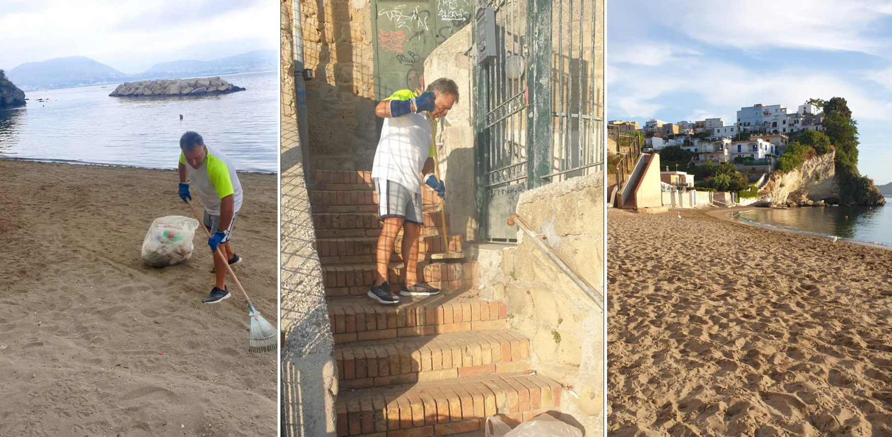 Peppe, percettore del Reddito di cittadinanza che pulisce la spiaggia libera di Bacoli