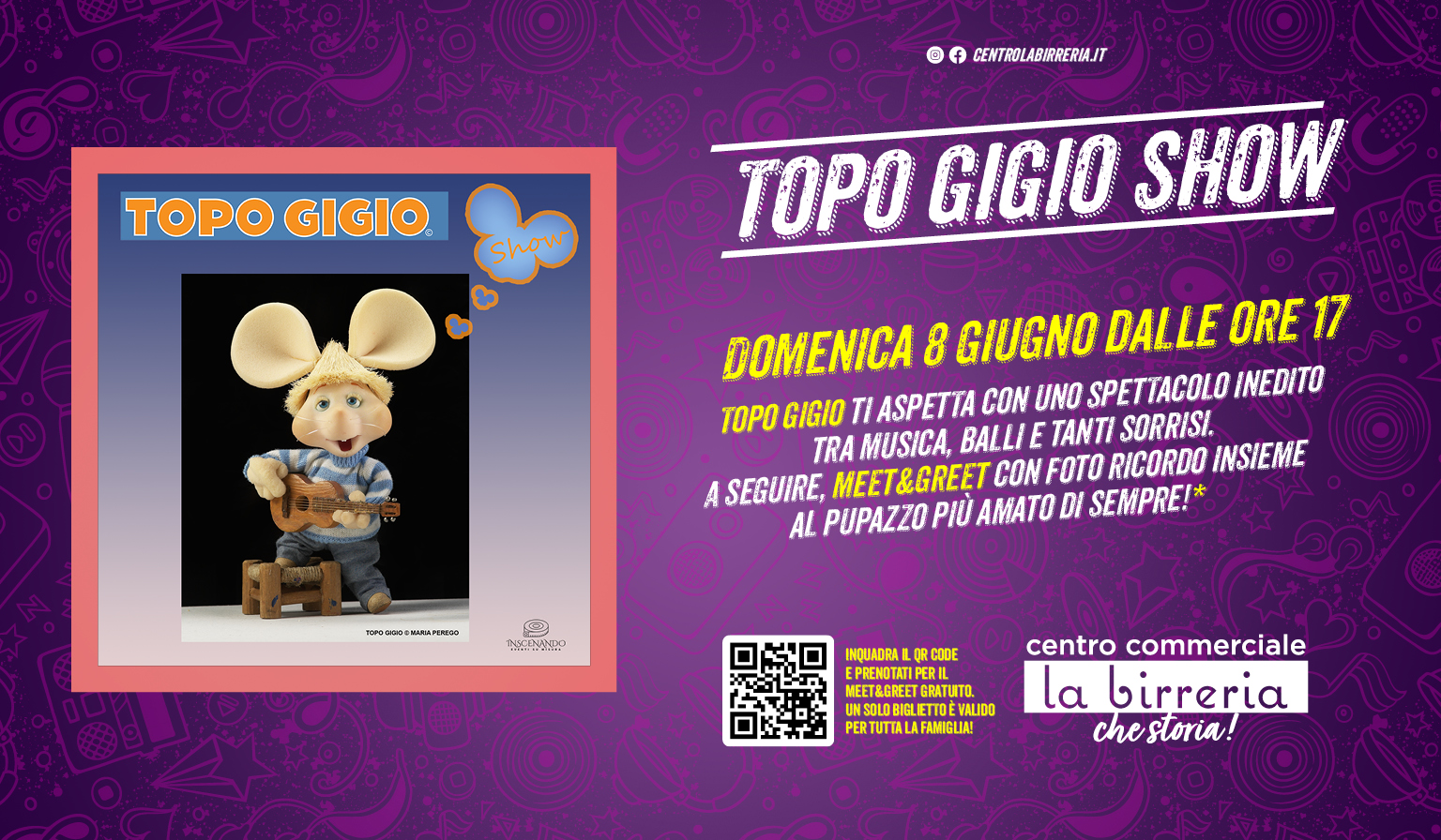 “Ma cosa mi dici mai!” È proprio il caso di dirlo: domenica 8 giugno alle ore 17, il Centro Commerciale La Birreria ospiterà lo spettacolo ufficiale di Topo Gigio, uno degli appuntamenti più attesi della stagione per grandi e piccini.