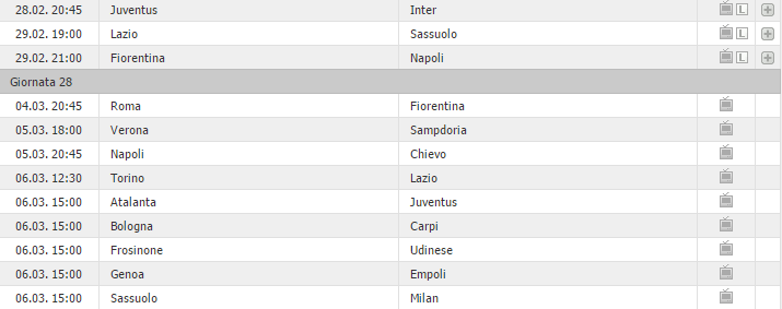 Nel prossimo turno, come già detto, il Napoli se la vedrà al Franchi contro la Fiorentina, mentre la Juventus sarà chiamata a confermare il trend positivo ospitando l’Inter allo Stadium. Due match insidiosi, ma marzo potrebbe sorridere ai partenopei. Per la 28^ giornata gli azzurri se la vedranno al San Paolo contro Chievo Verona, con i bianconeri protagonisti sul campo dell’Atalanta. Turno successivo che vedrà invece la Vecchia Signora affrontare il Sassuolo e il Napoli ospite del Palermo che pare sempre più in crisi. 30^ giornata, infine, che potrebbe significare molto: azzurri in casa contro “gli amici” del Genoa, Juve che invece dovrà affrontare il Torino nell’insidiosissimo derby della Mole. Poi la pausa per le Nazionali: insomma, il mese di marzo, a quanto pare, potrebbe risultare fondamentale per le sorti del tricolore.
