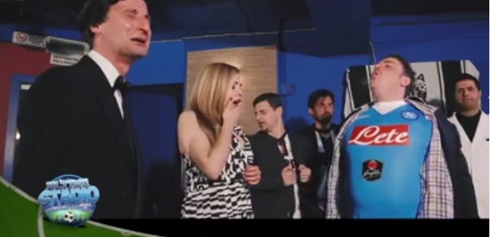 Il napoletano inizia a cantare, rievocando il grande Mario Merola de ‘O Zappatore”: “Felicissima sera a voi che avete vinto il campionato, a questa comitiva bianconera: uommene chic e femmene zebrate”.