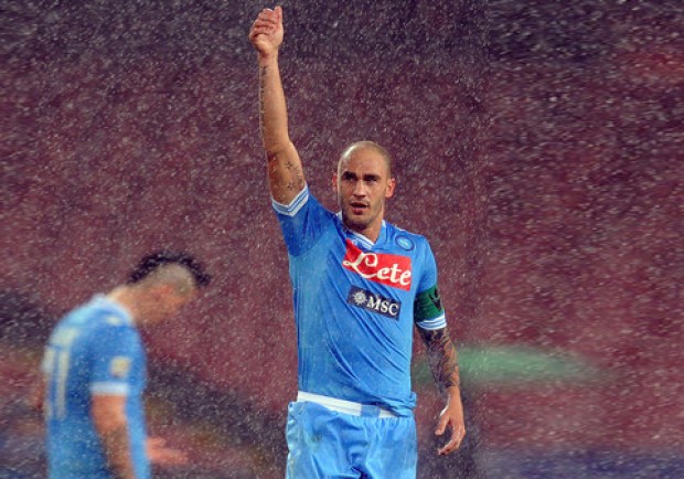 Il primo anno contribuì alla promozione in Serie A togliendosi tra l’altro la soddisfazione di segnare in rovesciata agli acerrimi rivali della Juventus in un match di Coppa Italia ad eliminazione diretta giocato al San Paolo (poi vinto ai rigori dagli azzurri). Il suo bilancio in 8 stagioni col Napoli è stato di 278 presenze (la maggior parte delle quali disputate indossando la fascia di capitano) e 9 reti condite da 2 qualificazioni dirette in Champions League e la vittoria della Coppa Italia materializzatasi nella notte di Roma del 20 maggio 2012 grazie alla vittoria per 2-0 contro la Vecchia Signora.