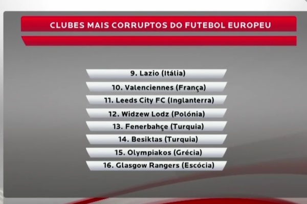 Fa discutere la classifica mostrata dalla televisione ufficiale del Benfica, Benfica TV. L’emittente portoghese, asserendo di aver ripreso il quotidiano inglese Daily Mail, ha stilato la classifica dei club più corrotti d’Europa. Comprensibile l’irritazione dei dirigenti delle società coinvolte, in particolare quelli del Porto, squadra rivale del Benfica.