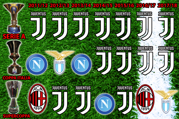 L’unica squadra in grado di spezzare l’egemonia bianconera è il Napoli, mai come quest’anno ad un passo dal vincere l’agognato tricolore, nonostante l’evidente e differente potenza economica dei due club. I partenopei negli ultimi 7 anni sono riusciti a portare a casa 3 trofei, risultando essere la squadra italiana più vincente dopo i bianconeri. I più importanti sono, ovviamente, la Coppia Italia del 2012 e la Supercoppa Italiana del 2014, entrambi vinti battendo proprio la Juventus nell’atto finale.