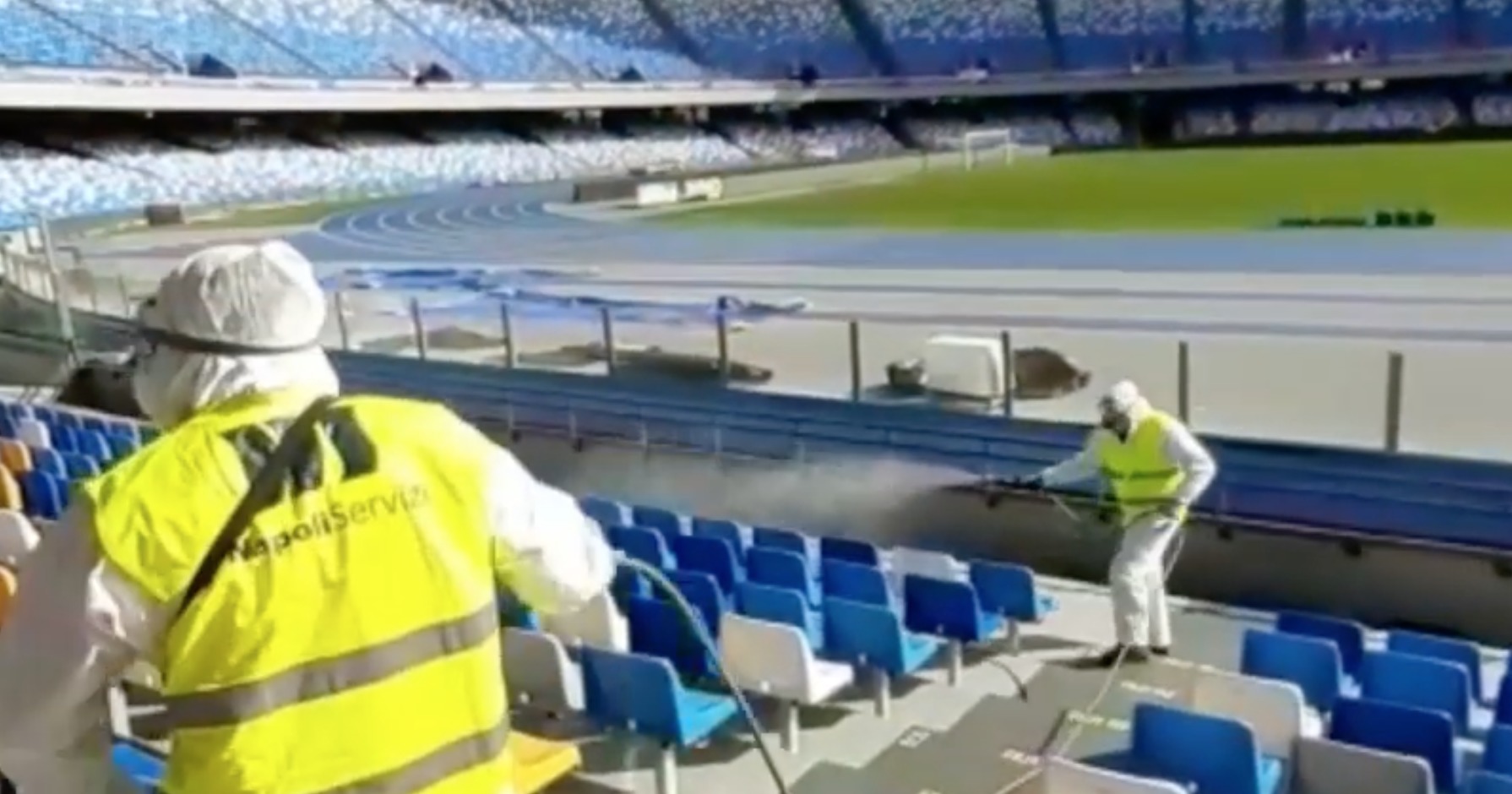 Intanto continuano le operazioni di sanificazione dello stadio San Paolo. Operatori specializzati della Napoli Servizi (società partecipata del Comune) stanno provvedendo in questi giorni a igienizzare l’impianto di Fuorigrotta. Un’operazione effettuata sia sugli spalti che negli uffici comunali presenti all’interno dello stadio. Oltre che naturalmente negli spogliatoi e nel sottopasso. Un vero kit quello utilizzato dal personale della Napoli Servizi per igienizzare il San Paolo che prevede 4 zaini a spalla con nebulizzatori, 2 camioncini attrezzati con atomizzatore, 5 atomizzatori a mano elettrici, 2 nebulizzatori carrellati per raggiungere le aree non accessibili con gli autocarri.