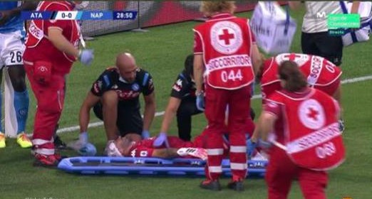 Su una punizione battuta da sinistra dall’Atalanta, il portiere colombiano tenta l’uscita bassa ma si scontra con il suo compagno Mario Rui e l’avversario Caldera. Ospina rimane a terra e inizia a perdere sangue dall’arcata sopraccigliare.
