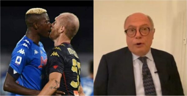 Ci chiediamo se fosse davvero necessario far svolgere questo match e mettere a rischio non solo tutti i giocatori e gli staff, ma anche le rispettive famiglie. È vero, in questo settore il Dio denaro viene prima di qualsiasi cosa, ma forse la salute andrebbe messa in primo piano. I contatti di gioco durante le partite ci saranno sempre – nella foto vediamo un faccia a faccia tra Osimhen e Masiello, sperando che nessuno dei due sia positivo – sarebbe meglio tutelare di più le intere società e le famiglie.