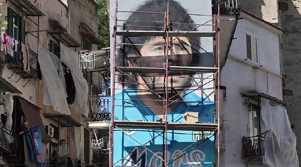 Nuovo murale Maradona. Napoli si sta già preparando per la festa del terzo scudetto. Il grosso distacco sull’Inter seconda a dodici giornate dalla fine fa sognare i partenopei.