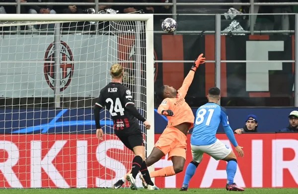 La gran parata di Maignan su tiro di Di Lorenzo in Milan-Napoli