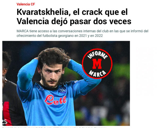 Kvaratskhelia al Valencia, ecco la traduzione dell’articolo di MARCA