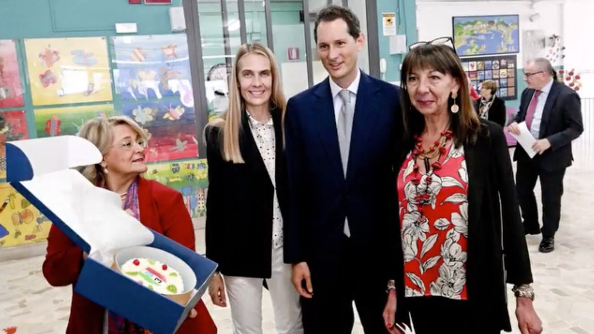 Cassata con lo Scudetto del Napoli donata a John Elkann in una scuola del Vomero