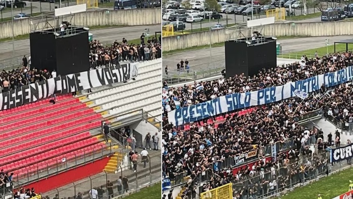 Il primo, che recitava “Assenti come i vostri attributi”, è stato esposto senza la presenza dei tifosi, a sottolineare in maniera ironica come la squadra in questa stagione sia stata ben al di sotto delle aspettative. Il secondo, srotolato quando il settore ospiti si è riempito, riportava il messaggio “Presenti solo per i nostri colori”.