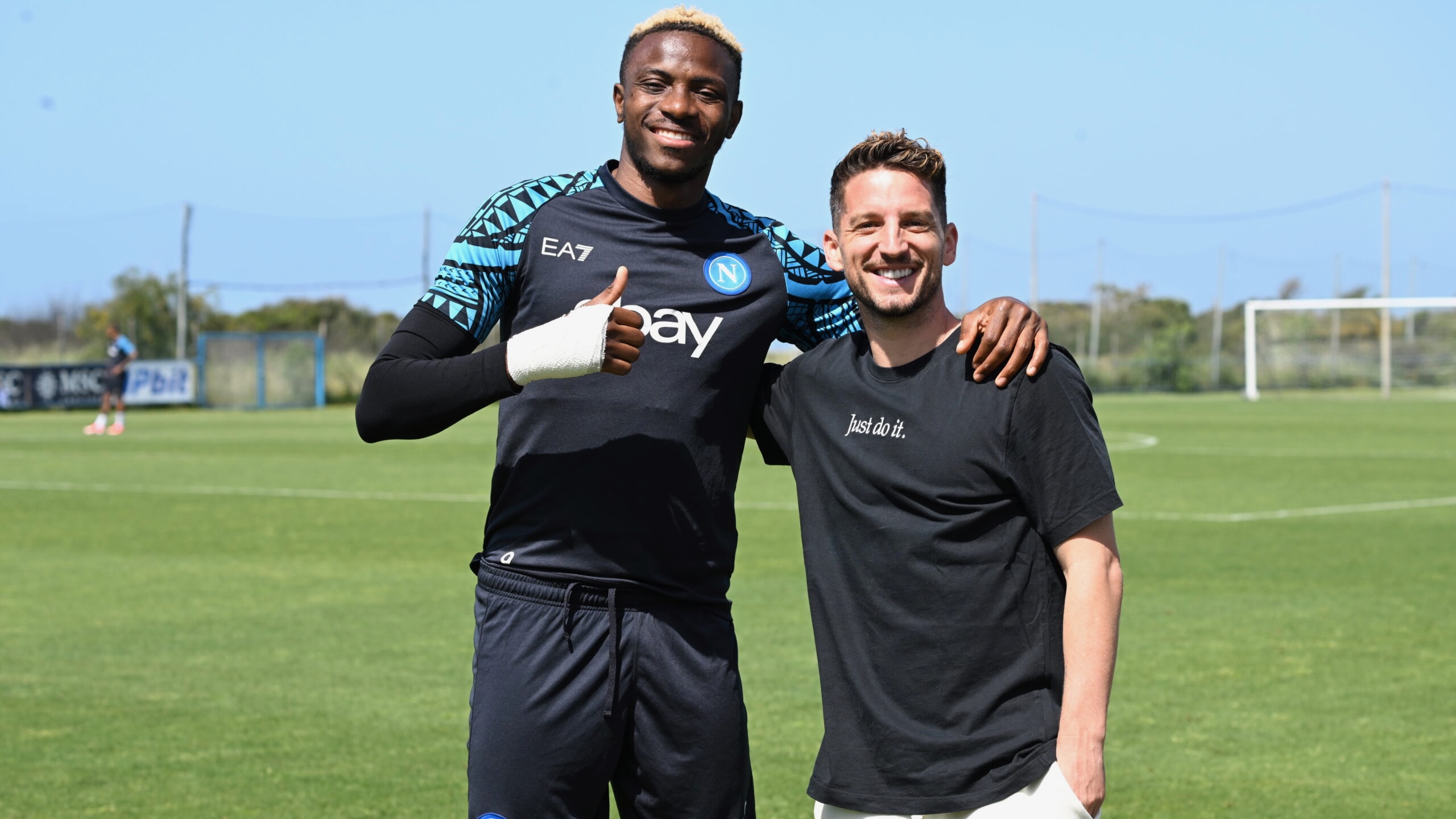 Dries Mertens scherza con Stanislav Lobotka su Marek Hamsik