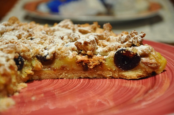 Una volta terminata la cottura, lasciar intiepidire la crostata e prima di servire, spolverare la superficie con zucchero a velo.