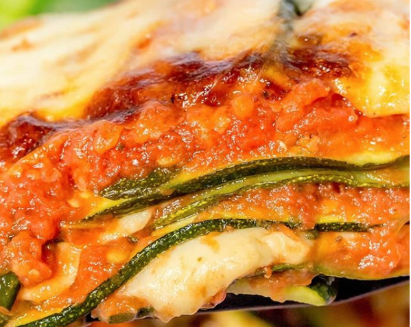 Quando la salsa e le zucchine saranno pronte, procedere all’imbottitura della parmigiana. Bagnare il ruoto con un mestolo di salsa, adagiare le prime fette di zucchine fritte, i cubetti di provola, una manciata di formaggio e poi ancora salsa, ripetendo così l’operazione fino alla chiusura composta da uno strato di melanzane ricoperto di salsa e formaggio grattugiato.