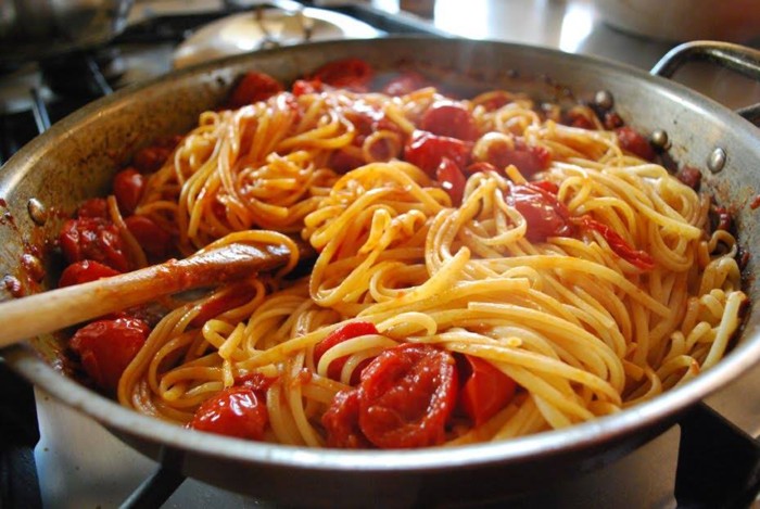 Pensate allo sfrigolio di un soffritto d’aglio, al colore rosso intenso dei pomodorini e al travolgente profumo di basilico, il tutto condito da un olio extravergine d’oliva, un vero e proprio biglietto verso il paradiso, grazie ad un piatto capace di stuzzicare ed appagare tutti i cinque sensi.