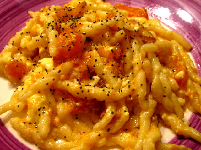E noi partenopei, pur affacciandoci con curiosità a queste costumanze, restiamo fedeli alle nostre tradizioni, e in particolare, all’amore che mettiamo in cucina; per cui anche noi, per il mese di ottobre, vogliamo cimentarci in una ricetta a base di zucca: le trofie zucca e salsiccia!