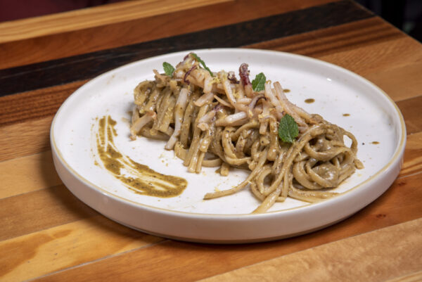 Le linguine al pesto di pistacchi e scottata di calamari di Casa KBirr.