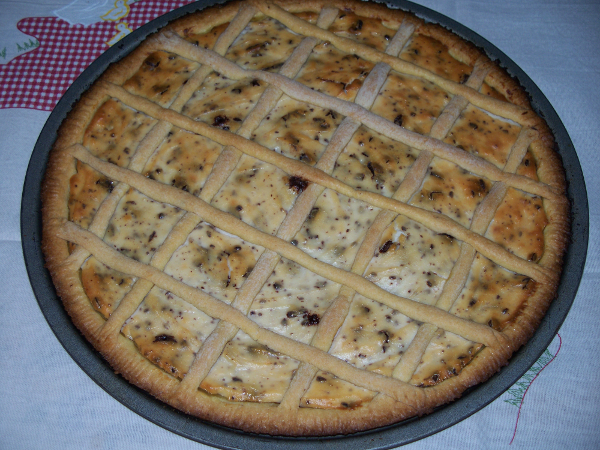 Unite lo zucchero, i tuorli d’uovo e il liquore (quanto basta, ma senza esagerare) o la scorza, e sbatteteli fino a quando non avrete uno zabaione chiaro e omogeneo, quindi aggiungete la ricotta dopo averla setacciata. Se lo desiderate, aggiungente delle gocce di cioccolato per rendere la torta più golosa, la vaniglia (o vanillina) e mescolate bene il tutto. A questo punto stendete la pasta frolla e ponetela in una teglia imburrata e infarinata, versate all’interno il composto di ricotta e adagiate sopra delle strisce di pasta frolla a mo’ di crostata. Fate cuocere a 180 gradi per circa un’ora. Se volete provare una variante senza cioccolato, potete usare al suo posto della marmellata di amarene.