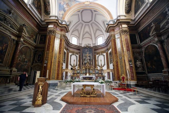 Classicheggianti sono invece le opere di Andrea Vaccaro come “Sant’Anna che offre Maria all’Eterno” e “San Tommaso” in cui il pittore si rifà alla scuola emiliana soprattutto di Guido Reni. Infine, sono di Giacinto Diano “Adorazione dei pastori”, “l’Adorazione dei Magi” e la “Circoncisione”, che decorano l’altare, oltre alla “Strage degli Innocenti” formata da una fascia centrale e due tele laterali. Tutte le composizioni sono definite da colori chiari e brillanti in cui vi è un forte equilibrio tra le figure e l’architettura. Tra il 1769 e 1770, furono affidate all’ingegnere napoletano Bartolomeo Vecchione la progettazione e la direzione dei lavori per la realizzazione di un atrio innanzi alla chiesa, oggi scomparso, ma raffigurato nella pianta realizzata dal duca Carafa di Noja.