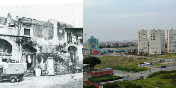 Nel secondo dopoguerra, intorno agli anni ’50, viene dato il via alla ricostruzione del quartiere. Questo periodo è tristemente noto per essere teatro della speculazione edilizia avuta con l’amministrazione del sindaco Achille Lauro: sorsero centinaia di edifici adibiti ad uso abitativo che in seguito formeranno i rioni popolari di Ponticelli, primo tra tutti il Rione De Gasperi.