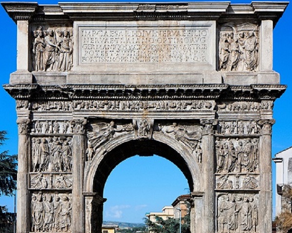 Il simbolo per eccellenza della città campana di Benevento è decisamente l’Arco di Traiano, un reperto d’epoca romana dedicato all’Imperatore Traiano, conosciuto anche come “Optimus Princeps”, e costruito in occasione dell’apertura della via Traiana, una strada romana costruita tra il 108 e il 110 d.C. che collegava più velocemente Beneventum – Benevento – e Brundisium – Brindisi – rispetto la lunga via Appia.