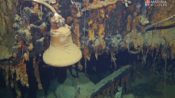 Le immagini sono state girate a oltre 1.500 metri di profondità grazie a un veicolo sottomarino filo guidato restituiscono per la prima volta da quel 1942 le immagini della della nave costruita nel cantiere navale di Castellammare.