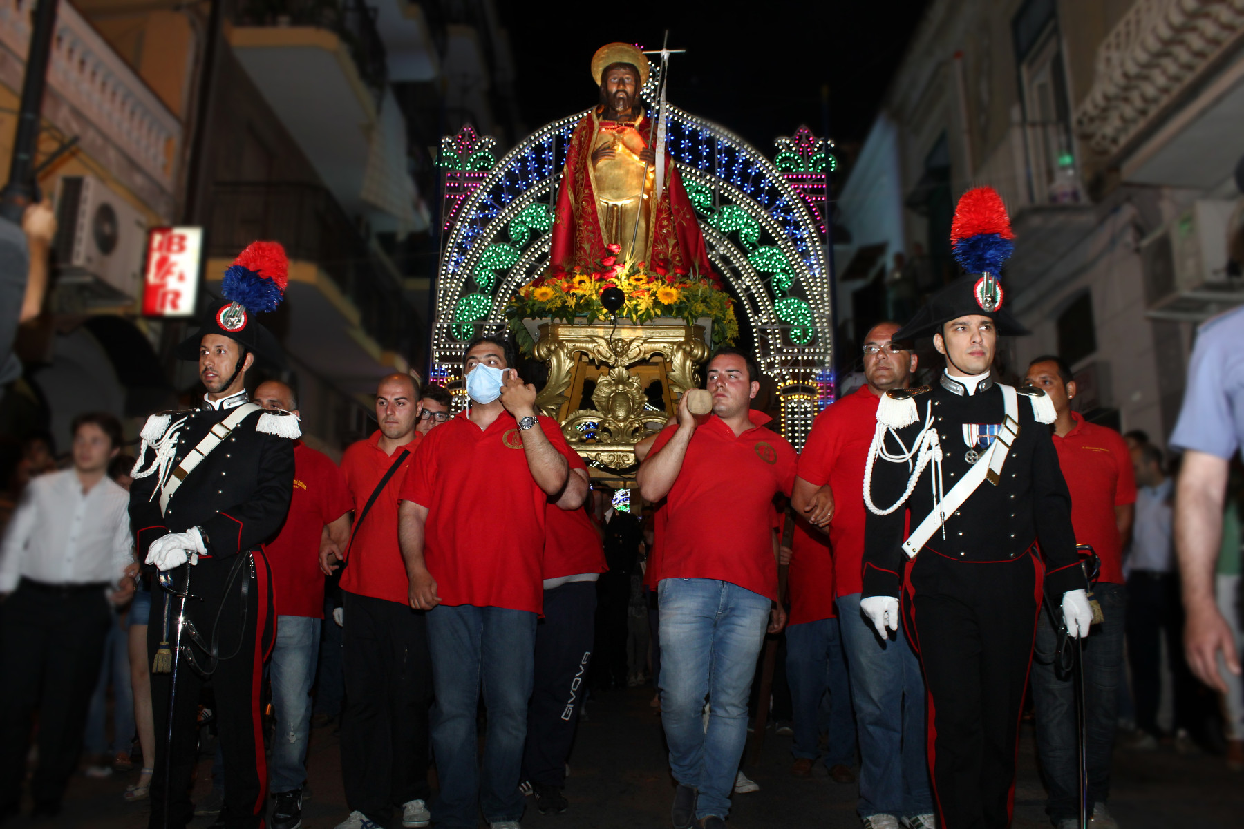 Da questo periodo, la statua lignea e la nuova scultura sono esibite in processione durante la festa. Solo a partire dalla fine della Seconda guerra mondiale fino al 1966, si sceglie di non presentare in processione la scultura settecentesca, ma di metterla sull’altare maggiore per tutta la durata della festa. Un altro rituale andato in disuso negli anni 70 è mettere le banconote da parte del volgo sul manto della statua in processione durante i giorni di festa dedicati al santo. Le due statue sono custodite gelosamente all’interno della Collegiata di San Giovani.