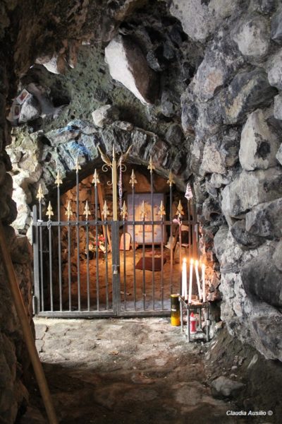 Arrivò davanti ad una grotta dove la capretta brucava un’erba rigogliosa. Il pastore entrò e trovò un baule sorvegliato da un serpente che reggeva due chiavi in bocca. Esso custodiva probabilmente l’icona della Beata Vergine in pietra lavica. La devozione mariana degli abitanti di Roccamonfina attirò l’attenzione di San Bernardino e di San Giacomo della Marca che fecero costruire un santuario dedicato a Maria.
