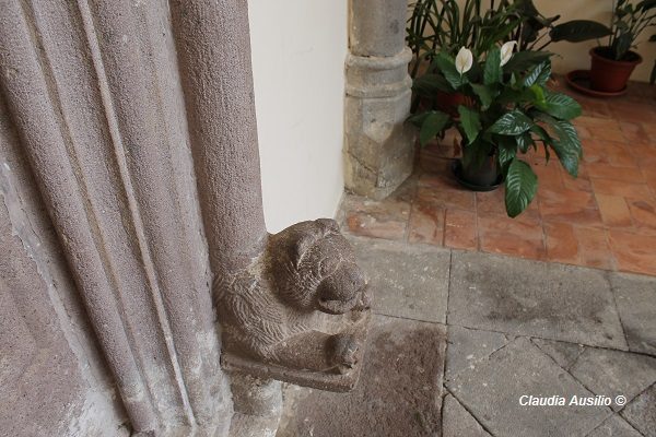 Sul lato sinistro della chiesa c’è una piccola porta che conduce ad un angolo suggestivo incorniciato da rosari, ex voto e ricordi di fedeli. Si tratta proprio della grotta del ritrovamento dell’icona mariana. Quando è stata ritrovata la statua era di colore grigio chiaro, poi è stata colorata. Maria indossa un abito rosso col mantello azzurro, vestiario tipico del Trecento.