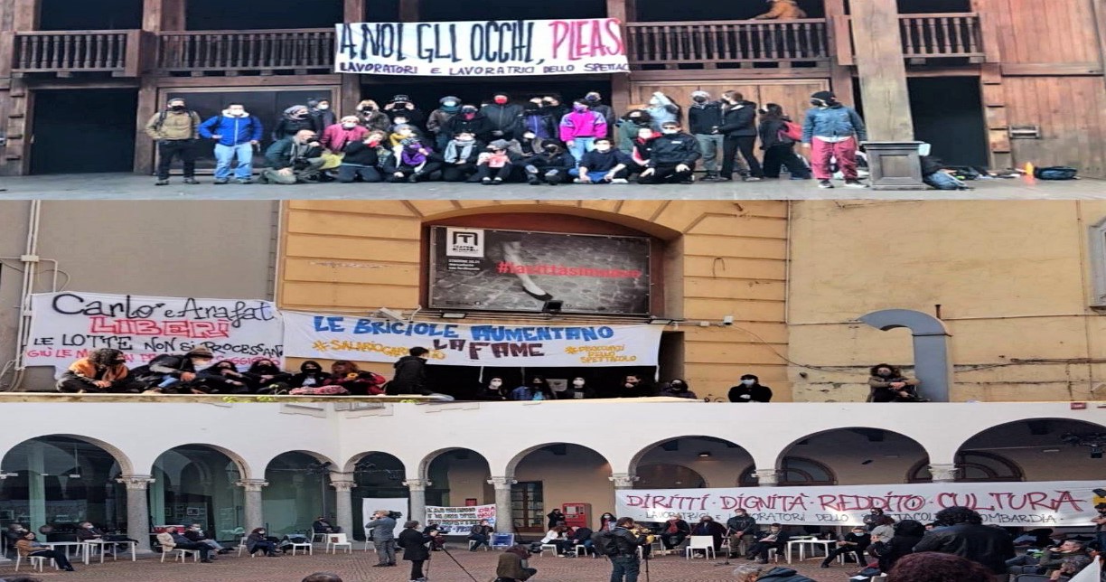 Ispirati dai colleghi parigini, le lavoratrici ed i lavoratori dello spettacolo del Coordinamento Arte e Spettacolo Campania sono scesi in piazza a fine marzo dando vita all’occupazione del Teatro Pubblico Mercadante di Napoli. Stessa scena al Piccolo Teatro di Milano, tutt’ora presidiato in assemblea permanente.
