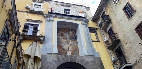 Stamattina in occasione del Maggio dei Monumenti 2021, alle ore 10.30, è stato svelato, sulla Porta di San Gennaro, il restauro del dipinto murale di Mattia Preti della Madonna con i santi Gennaro, Rosalia e Francesco Saverio.