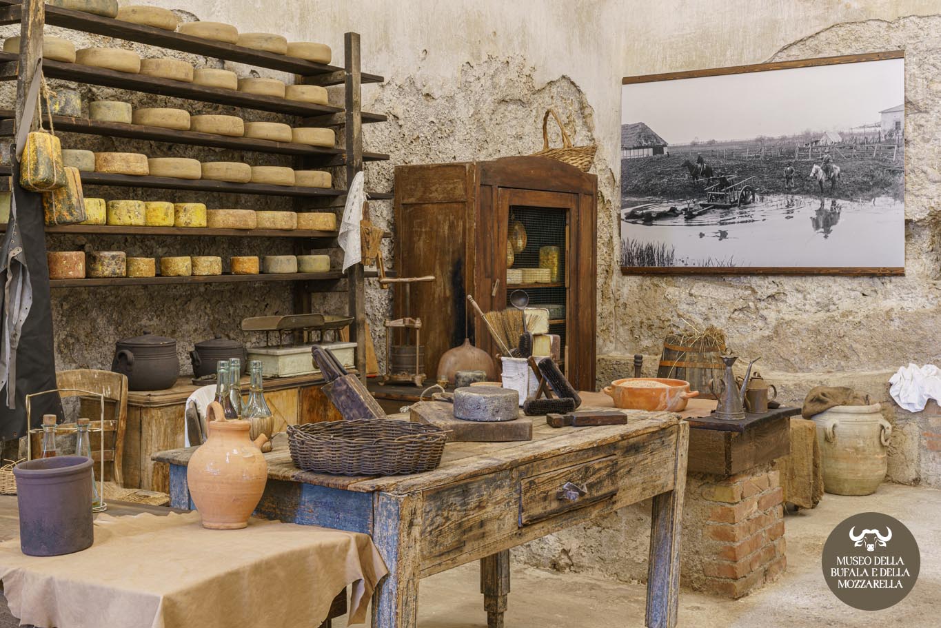 Tremila metri quadri di superficie espositiva, divisi in dodici sezioni tematiche, che offre “un quadro sui diversi aspetti del mondo della bufala, dando forma alla più completa raccolta esistente in Italia di materiali antichi su questo animale e sulle attrezzature per la trasformazione del suo latte“.