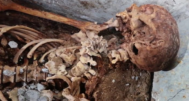 Non meno eccezionale dell’iscrizione risulta la sepoltura di Marco Venerio Secundio. Si tratta di uno degli scheletri meglio conservati ritrovati nella città antica.Il defunto fu inumato in una piccola cella di 1,6x 2,4 metri posta alle spalle della facciata principale, mentre nella restante parte del recinto sono state riscontrate due incinerazioni in urna, una in un bellissimo contenitore in vetro appartenente a una donna di nome Novia Amabilis. Nella fase romana di Pompei, il rito funerario prevedeva di norma l’incinerazione, mentre solo bambini piccoli venivano inumati. La sepoltura di Marco Venerio è dunque altamente insolita anche per il rito funerario adottato, considerando che si trattava di un uomo adulto di più di 60 anni, come emerge da una prima analisi delle ossa ritrovate nella camera funeraria. Le caratteristiche della camera funeraria, che consisteva in un ambiente ermeticamente chiuso, hanno creato le condizioni per lo stato di conservazione eccezionale in cui è stato trovato lo scheletro, con capelli e un orecchio ancora visibili. Inoltre, sono stati recuperati elementi di corredo, tra cui due unguentaria in vetro e numerosi frammenti di ciò che sembra essere un tessuto.