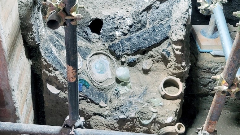 Diversi ambienti, disposti su più piani, e con arredi dell’epoca, sono stati rinvenuti attorno al sontuoso larario con raffigurato un giardino incantato, già scavato nel 2018 durante gli interventi di manutenzione. E’ così che la vita immobile di Pompei riaffiora, tra piatti, vasi, anfore, oggetti in vetro e terracotta in bauli e armadi, abbandonati durante l’eruzione del 79 d.C. e alcuni sconquassati dalla catastrofe.