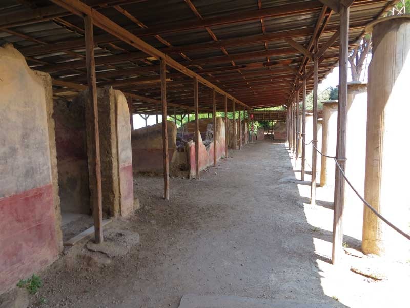 La Villa del Pastore – così chiamata per il ritrovamento di una statua raffigurante un pastore con agnello – venne anch’essa esplorata in epoca borbonica da Karl Weber e, in seguito, interrata. Alcune strutture della villa vennero intercettate negli anni ’60 e il sopraintendente dell’epoca, Alfonso de Franciscis, chiese di espropriare tutta l’area per intraprendere una campagna di scavi sistematici. In attesa di tale permesso, le strutture furono nuovamente sepolte nel 1970. A seguito di varie questioni burocratiche, la causa di esproprio va avanti ancora oggi e la villa rimane attualmente sepolta.