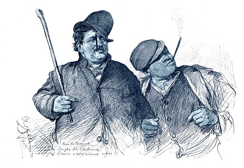 A quanto pare, però, l’indole al compromesso, la vera e propria camorrìa, venne con il tempo e con gli spagnoli. Siamo nel 1400 e a Napoli filava tutto liscio se non per alcuni “strani individui chiamati Compagnoni che vivendo di ozio e prevaricazioni”… prestavano servizio presso i signorotti locali, alla stessa stregua dei Bravi manzoniani. Parallelamente, invece, in Spagna esisteva già dal 1417 “La confraternita della Guarduna”, la società segreta specializzata nell’organizzare delitti per conto di terzi e nel percepire tangenti su ogni sorta di attività. I Bravi scagnozzi, i “Guapos”, che in gergo erano detti “Punteadores” (pugnalatori), i “Floreadores” (assaltatori), ex ergastolani fuggiti dai bagni penali di Siviglia, Malaga e Metilla, i “Fecelles”(i soffiatori), anziani nobili del Santo Uffizio che fornivano notizie sul colpo da eseguire. Giovani leve, i chivatos e coberteras, che a seguir di un tirocinio formativo criminale potevano essere promossi postulenates e dopo due anni guapos. Non mancano le donne, le “sirenas”, che con il loro fascino attiravano le vittime.
