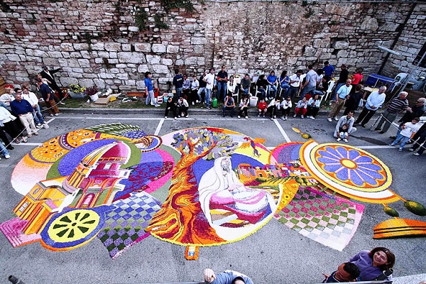 4) L’infiorata di San Pier Niceto: ritorniamo in Sicilia, perché quest’ultimo è un piccolo paese del messinese predominato dalle tradizioni e dal senso di religiosità, infatti, anche la sua infiorata avviene nel giorno del Corpus Domini e in quell’occasione ogni minima attività quotidiana è sospesa per dedicarsi completamente a quest’evento. Infatti l’infiorata di San Pier Niceto è la più lunga in assoluto perchè occupa l’intero paese con mosaici floreali diversi, multiforme e variegati dal punto di vista del colore.