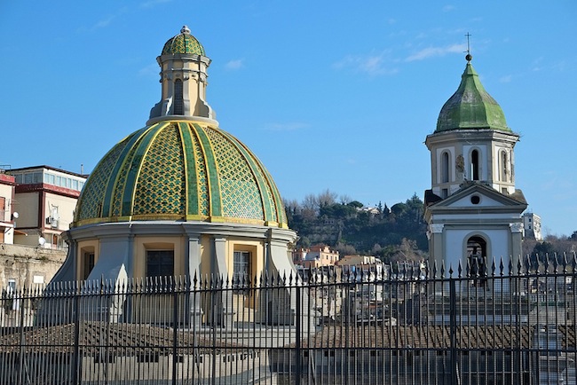 Guardando dall’alto Napoli a tutti sarà capitato almeno una volta di soffermare lo sguardo su una cupola con maioliche gialle e verdi che spicca nel quartiere Sanità. Questa costruzione appartiene alla celebre Basilica di Santa Maria alla Sanità. Costruita tra il 1602 e il 1610 da Fra’ Giuseppe Nuvolo, alias Vincenzo de Nuvola, è uno dei tanti esempi dell’arte barocca che trovò, nel XVII secolo, il suo massimo splendore nel capoluogo campano. Linee curve e sinuose, giochi di chiaroscuro ottenuti con l’uso di materiali diversi come marmo e piperno, uso combinato di pittura, stucco e scultura: Santa Maria alla Sanità è tutto questo e molto di più.