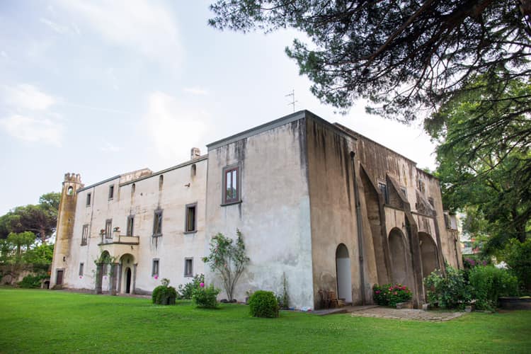 Attraversando il cortile interno ci si imbatte in una vasta e rigogliosa area verde, scandita dalla presenza di un boschetto e da un ampio giardino con piscina che regala splendide vedute sul Vesuvio e la zona circostante. Altrettanto suggestivi appaiono gli interni, caratterizzati da un susseguirsi di sontuosi saloni corredati da mobili dell’epoca e affrescati con motivi a grillages e scene di caccia, tipiche decorazioni settecentesche.