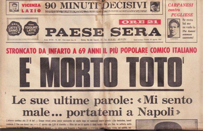 Oggi, 15 febbraio, ricorre l’anniversario della nascita del grande Totò. Il 15 aprile del 1967, all’età di 69 anni, morì stroncato da un infarto dopo aver sofferto di una lunga agonia durata giorni.