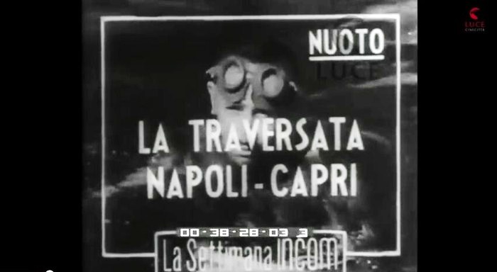 Mostra Fioravanti seguito a breve distanza dalle barche, poi un uomo che dalla barca passa i viveri al nuotatore affamato e ripreso poi mentre mangia una banana. Evidente è il clima di giubilo quando l’atleta giunge a Capri, dove i bambini e i ragazzi lo seguono mentre è aiutato a risalire a terra e lo accolgono tra applausi festosi. Infine i due campioni che si stringono la mano.