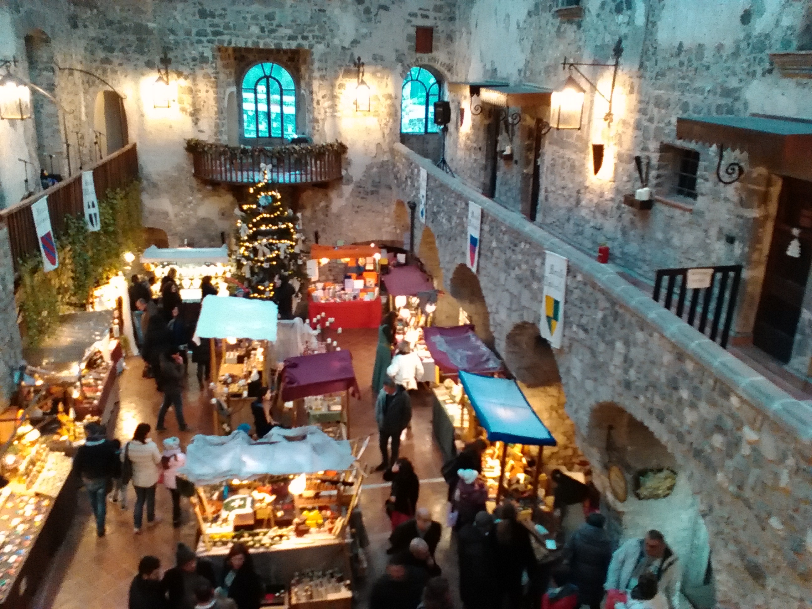 Tra una nevicata di schiuma, un giullare e un mangiafuoco, è possibile poi ammirare gli artigiani a lavoro, che sia uno scalpellino in costume d’epoca o un intrecciatore di ghirlande, che sia una decoratrice di palline di vetro soffiato o un battitore di metalli. Ciò che è certo è che tra leccornie varie, decorazioni natalizie, gioielli, tessuti, ceramiche, giocattoli, armi medievali, presepi, cosmetici e oggetti scaramantici, ciascuno lascerà il castello con il proprio bottino tra le mani.