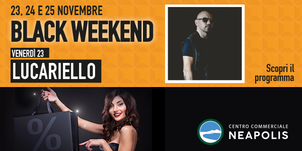 Venerdì 23 novembre i negozi saranno eccezionalmente aperti fino alle ore 22 con shopper personalizzati per tutti. A partire dalle ore 19, spazio anche alla musica con DJ set e foto con un grande artista napoletano: il rapper Lucariello. Si continua sabato 24 novembre alle 18 con musica ed esibizioni hip hop. La domenica del 25 novembre sarà, invece, dedicata a tutti gli appassionati del calcio con la partita Napoli-Chievo in diretta sul maxischermo in Galleria a partire dalle ore 15.
